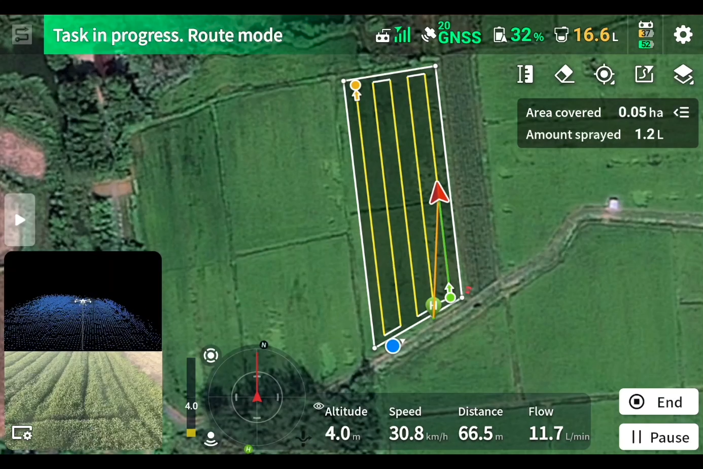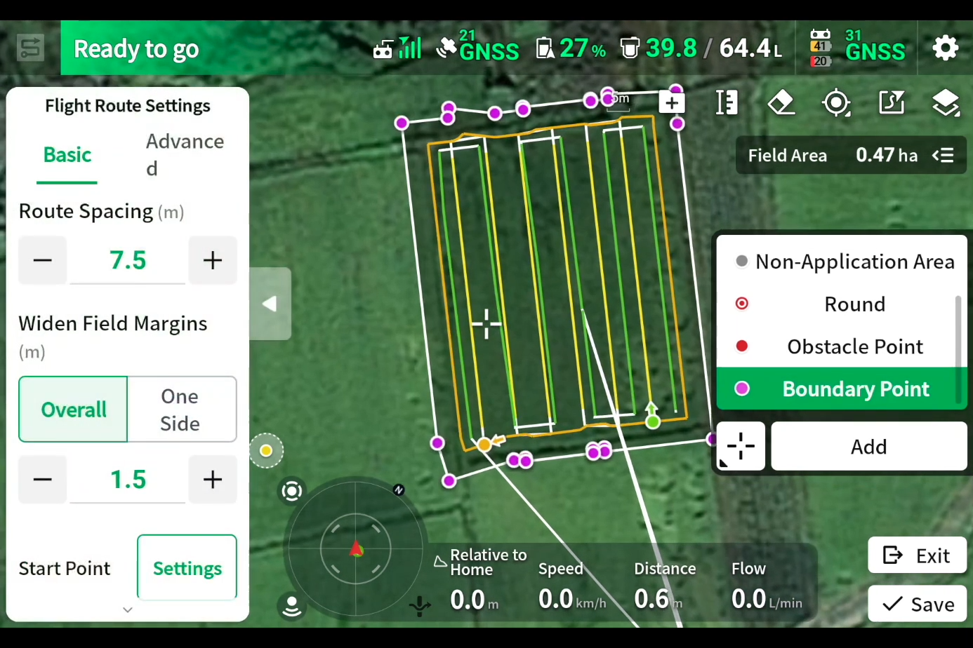 Choose from multiple planning methods. Once the field is planed, the flight path is automatically generated.