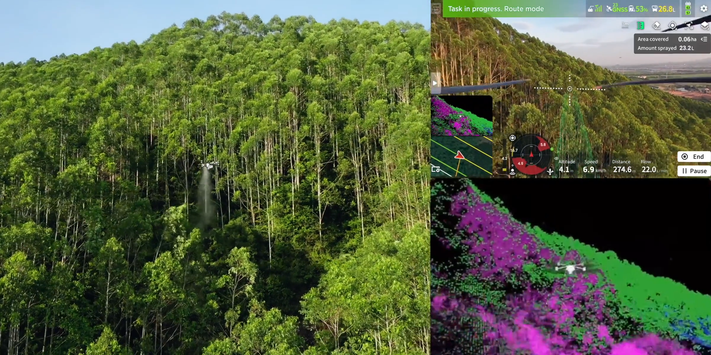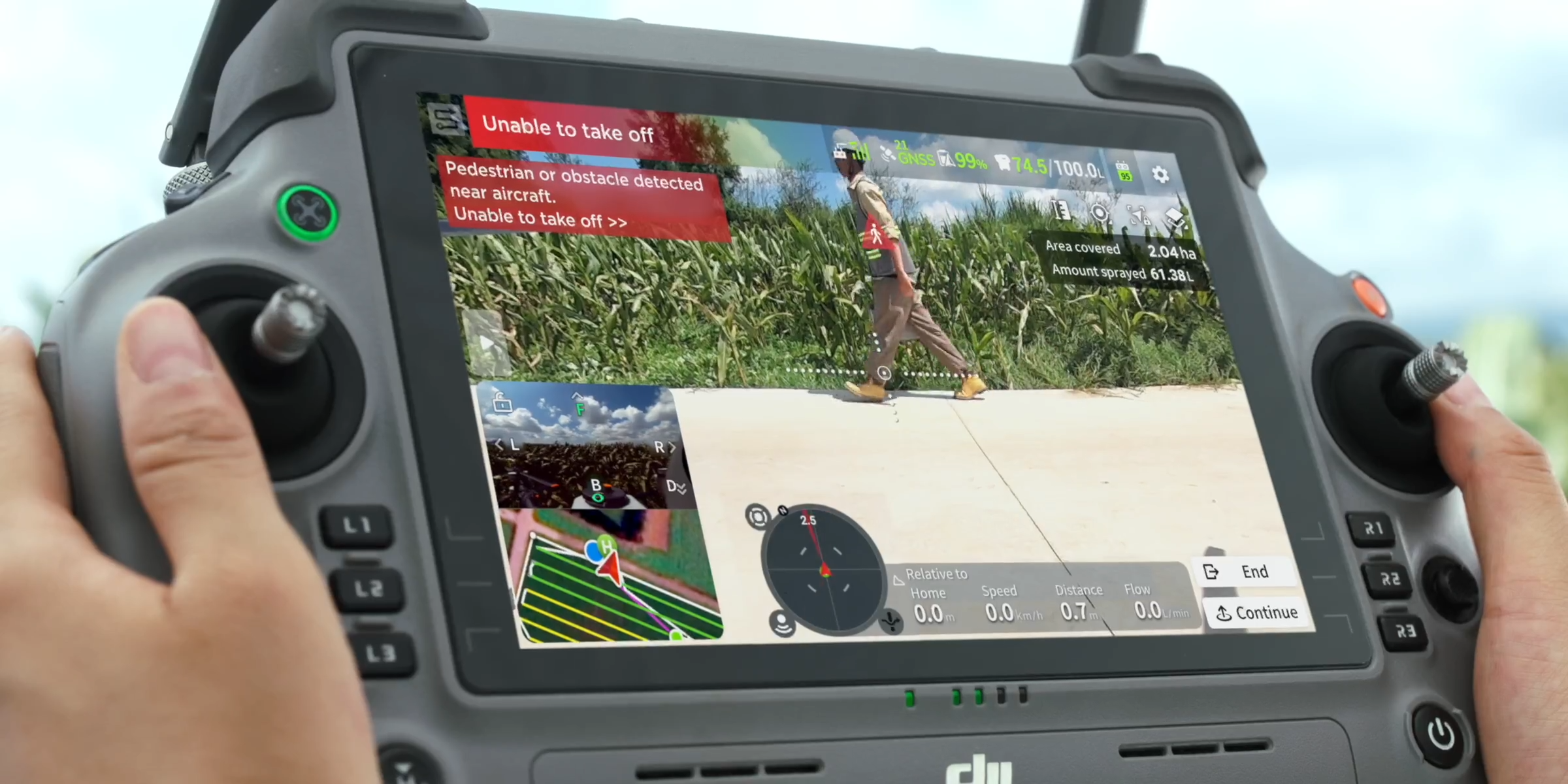 Operators can use their mobile phones, in conjunction with the RTK module, to add load and unload points, which are then synced to the remote controller. Pilots can quickly locate destinations using AR projection on the controller.